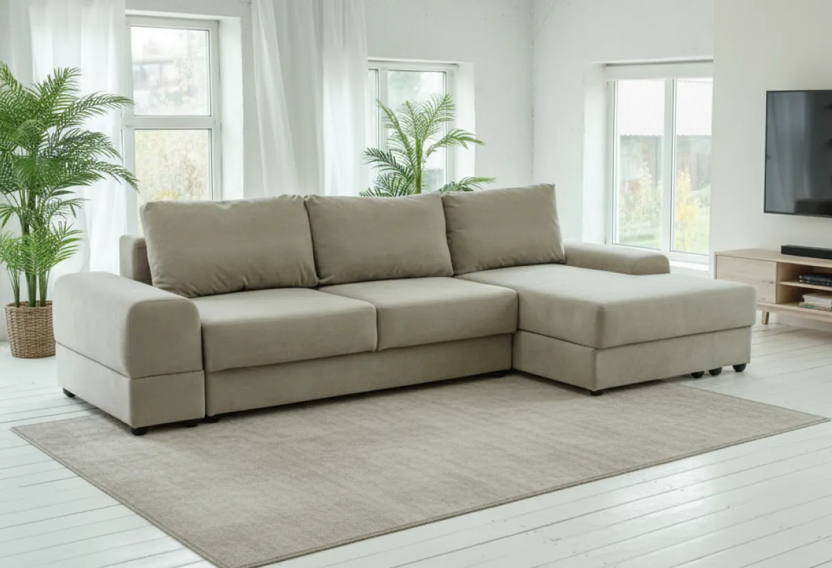 Что представляет модульный диван АндрэаДиван Андрэа — это модульная система, которую вы собираете под себя. Хотите компактный прямой диван? Пожалуйста. Нужна большая угловая конструкция с местом для хранения? Тоже без проблем. Внешне — строгий минимализм. Никаких завитушек и лишнего декора, только прямые линии и простая геометрия. Благодаря этому он одинаково хорошо смотрится в современной гостиной, квартире-студии или даже спальне. Добавьте сюда детали из скандинавского стиля и лофта — получится мебель, которая не будет спорить с интерьером, а станет его аккуратной частью. Внутри — добротный каркас из ДСП и фанеры, пружинный блок «змейка» и многослойный поролон (жесткий, плотный, сверху — лотекс и холкон). То есть диван рассчитан на ежедневную нагрузку. Производитель заявляет до 110 кг на одно посадочное место и 140 кг на спальное. В общем, сделано на совесть. Соединяются модули между собой обычными болтами — ничего не будет разъезжаться.