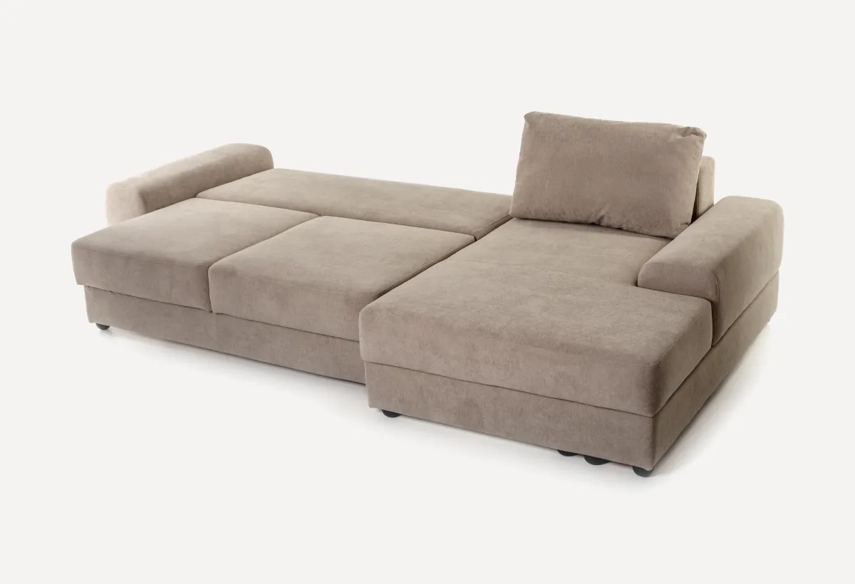 Диван с подлокотником (левый или правый)То же, что и средний диван, но с подлокотником с одной стороны. Внутри — механизм трансформации пантограф и ящик для белья. Можно использовать как отдельный диван для маленькой комнаты или как крайний модуль в большой конструкции.